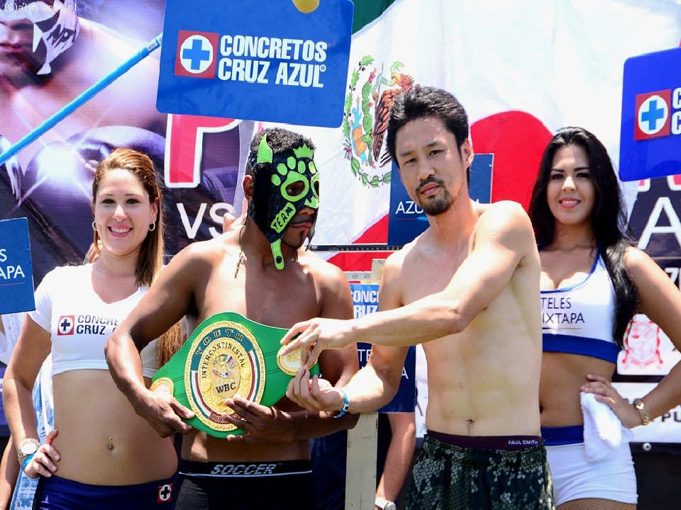 覆面ボクサーとして知られるサギジャンは、この日も面をつけて計量会場に姿を現した。身長では岡田が上回っているようにみえたが、ともに計量は無事にパス。試合を待ちばかりとなった。戦績はサギジャンが34戦29勝(11KO)4敗1分。12年8月のメキシコ遠征でアレハンドロ・サナブリア(メキシコ)と激闘を展開、8回TKOで敗れている岡田は22戦18勝(10KO)4敗。サナブリア戦を含めて一時は3連敗とスランプだったが、その後は2連続KO勝ちと復調している。