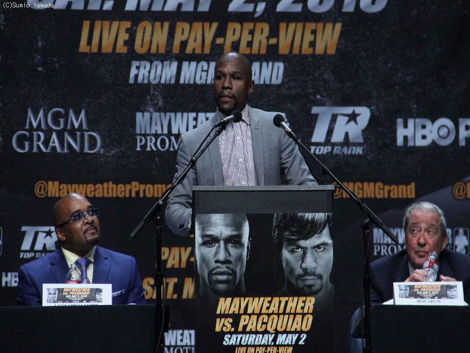 5月2日(日本時間3日)、米国ネバダ州ラスベガスのMGMグランドガーデン・アリーナで行われるWBA、WBC世界ウェルター級王者フロイド・メイウェザー(38=米)対WBO同級王者マニー・パッキャオ(36=比)のドリームマッチは、スポンサー料だけでも1320万ドル(約15億8400万円)になることが明らかになった。