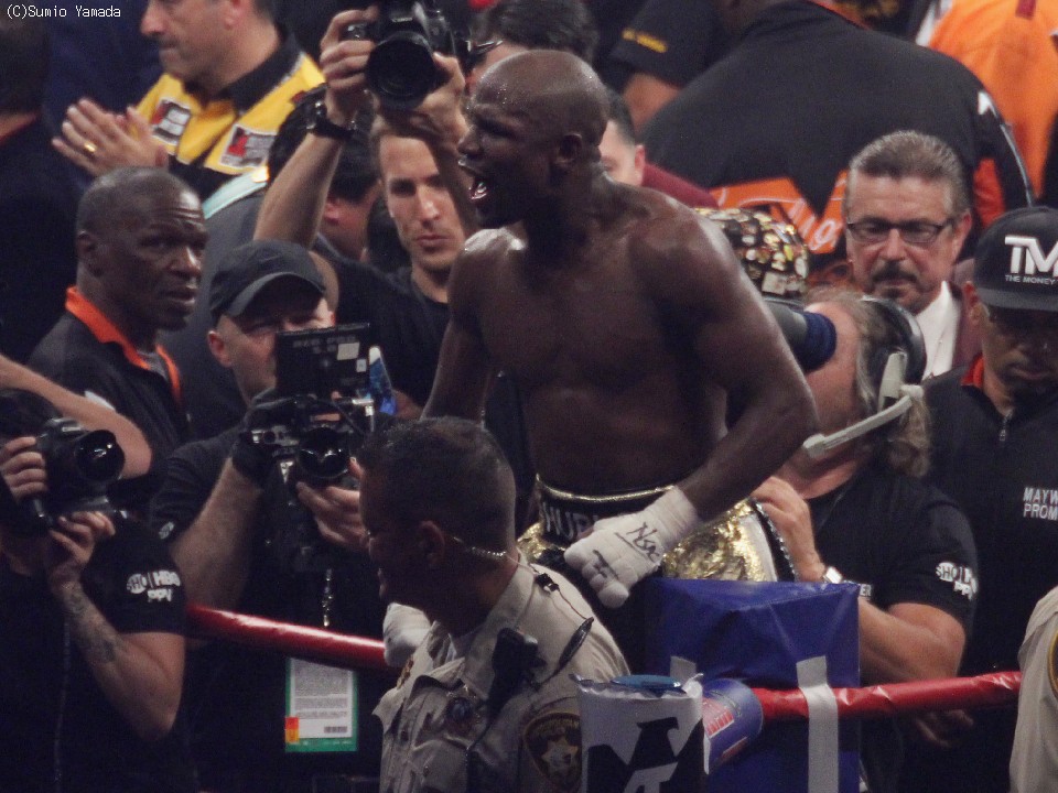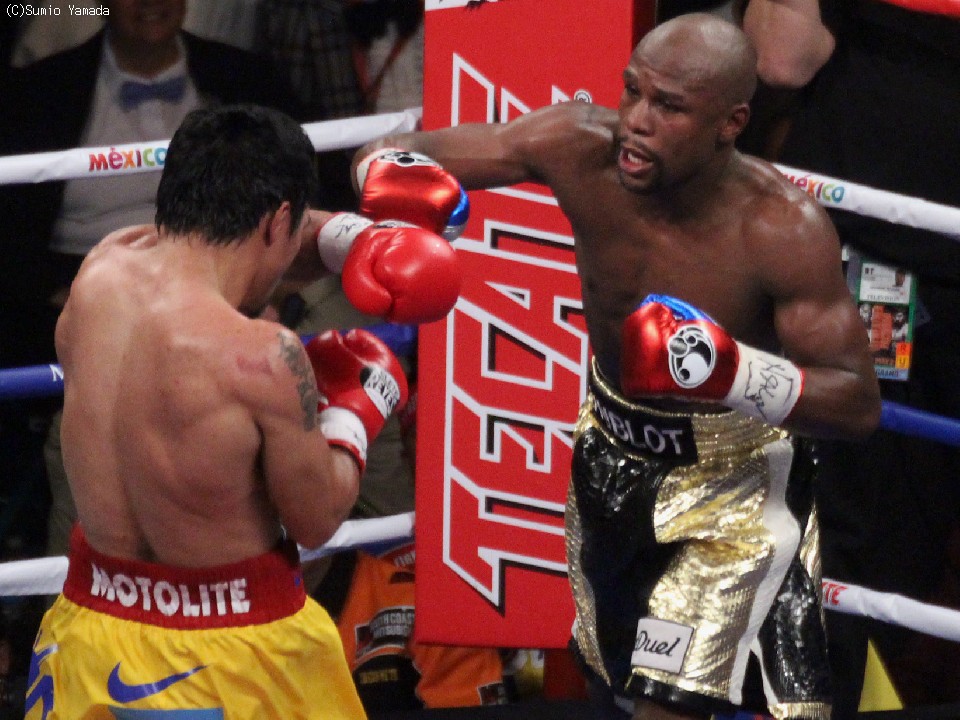 試合では予想どおりメイウェザーがパッキャオの強打を空転させ続け、明確な差をつけて12回判定勝ちを収めた。パッキャオは「私が2ポイントは勝っていた」と主張したが、同調する者はフィリピンの熱狂的なファンぐらいしかいなかった。試合前に右肩を痛めていたことを明かし、そちらの方が問題になったほどだった。ボクシングファンやマニアは両雄が同じリングに上がって時点である程度の満足を得られたが、社会的な関心ごととして試合を見た人までも満足させたかというと、残念ながら否定的な答えの方が多い試合だった。