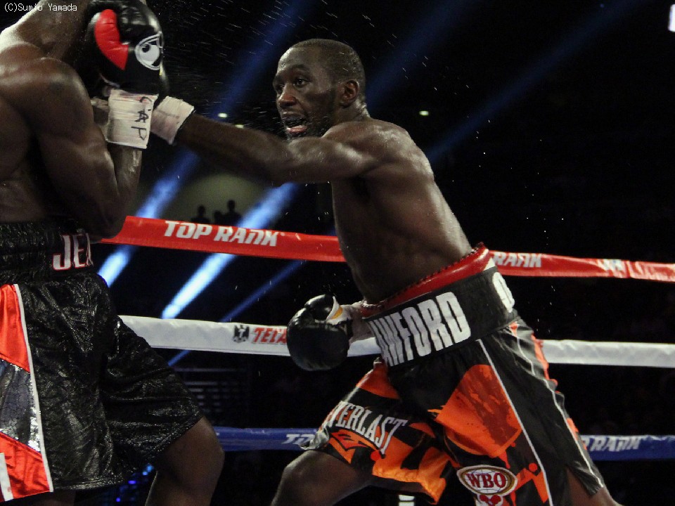 クロフォードは昨年4月に王座を獲得し、10月にはディエリー・ジャン(ハイチ/カナダ)を10回TKOで撃退。これが2度目の防衛戦となる。計量は139.2ポンド(約63.1キロ)で楽々とクリアした。初挑戦のランディはさらに軽い138.2ポンド(約62.7キロ)だった。両者は前日の会見で掴み合い寸前になったため、この日は計量後のフェイスオフはなかった。クロフォードは27戦全勝(19KO)、ランディは32戦26勝(13KO)5敗1分。セミファイナルにはライト級の次期王者候補と目されるフェリックス・ベルデホ(プエルトリコ)が出場する。