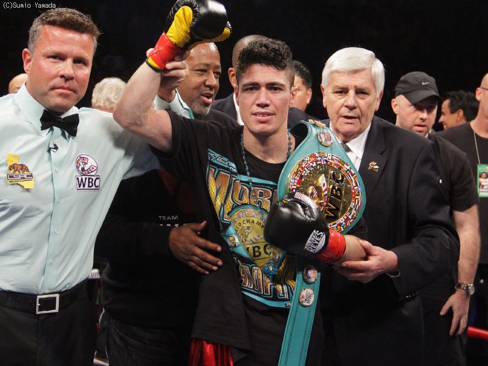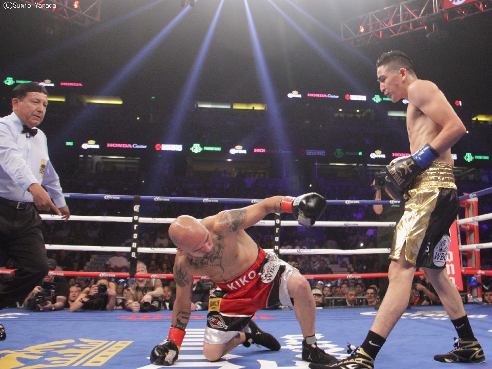 試合は初回から大きく動いた。サンタ・クルスの右を浴びたマルチネスが2度のダウンを喫したのだ。2回以降、マルチネスはなんとか懐に潜り込もうとしたが、サンタ・クルスは左を突いてそれを許さない。迎えた5回、サンタ・クルスが連打で挑戦者をグロッギー状態に追い込むと、レフェリーが両者の間に割って入った。初防衛に成功したサンタ・クルスは33戦32勝(18KO)1分。世界戦3連敗となったマルチネスは42戦35勝(26KO)7敗。