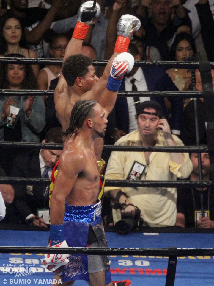採点は三者とも115対113でサーマンの勝利を支持していた。暫定王者時代から数えて6度目の防衛を果たしたサーマンは28戦27勝(22KO)1無効試合、ポーターは29戦26勝(16KO)2敗1分。