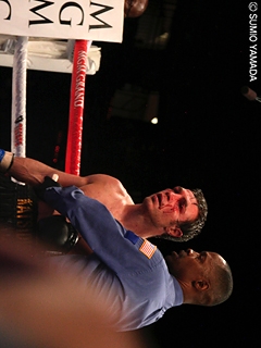 その後も激しいパンチの応酬が続いたが、マルケスの上下のコンビネーションを浴びたカチディスは徐々に消耗。さらに顔面の腫れも目立ち始めた。8回になるとカチディスは目に見えてペースダウン。9回、マルケスがコンビネーションで攻め立てると、ダメージの見えるカチディスは力なく後退して難を逃れようとしたが果たせず、レフェリーが試合をストップした。