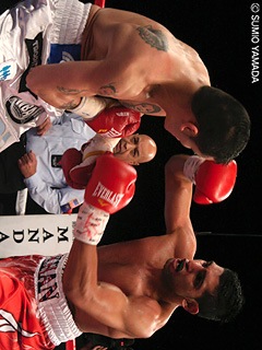 カーンのスピードか、それともマイダナのパワーが凌駕するか注目された一戦。まずはカーンが先手をとった。初回終盤、強烈なボディブローでダウンを奪ったのだ。マイダナにとって幸運だったのは立ち上がってすぐにラウンド終了のゴングが鳴ったことだろう。ダメージの回復を待って3回から重圧をかけ始めたマイダナだが、5回に肘打ちの反則で減点1を科されてしまう。