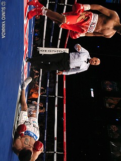その後はプレスしながら前に出て強打を振るマイダナと、スピードと足、鋭いパンチで応戦するカーンという白熱した展開が続いた。試合が大きく動いたのは10回。マイダナの強打がカーンを捉え、正規王者がKO負け寸前のピンチに陥ったのだ。しかし、マイダナも疲労の色が濃く、フィニッシュに持ち込むことはできなかった。これを凌いだカーンは11回、12回と応戦し、試合終了のゴングを聞いた。