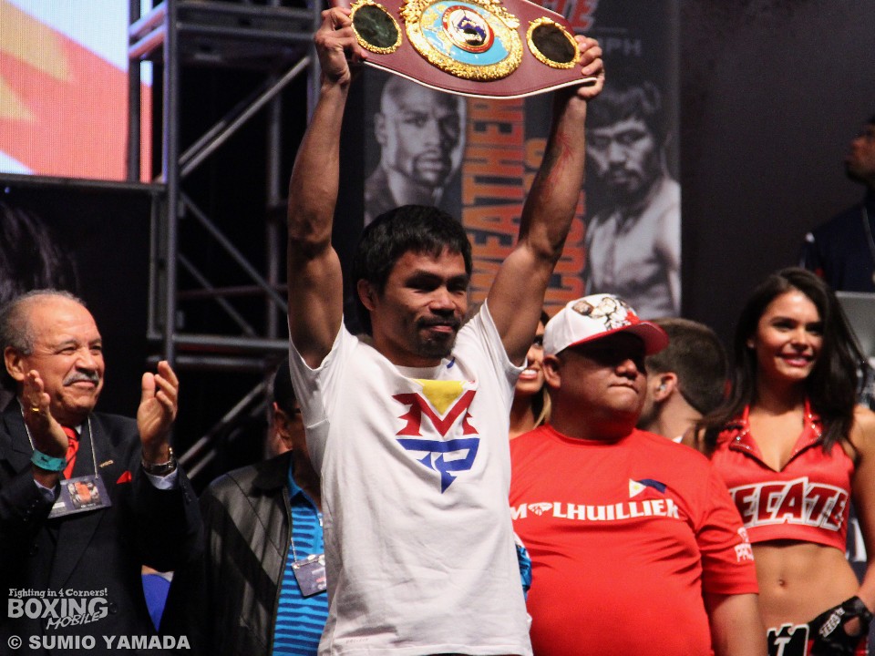 現役組では、まずパッキャオの引退と復帰が話題になった。6階級制覇を成し遂げているパッキャオは10年からフィリピンの下院議員としても活動していたが、今年5月には上院議員選挙に出馬するため、4月のティモシー・ブラッドリー(米)戦を最後に引退することになった。試合では2度のダウンを奪って圧勝、選挙でも当選を果たし、ひとつの時代が幕を下ろしたかと思われた。しかし、7月ごろから復帰が囁かれ始め、8月にはパッキャオ自身も本格的なトレーニングを開始。そして11月にはジェシー・バルガス(米)戦で復帰を果たした。この試合でWBO世界ウェルター級王座に返り咲いている。バルガス戦の3週間後には原宿にジムを開設するためPRを兼ねて来日。その際には「次戦は4月か5月」と話していた。