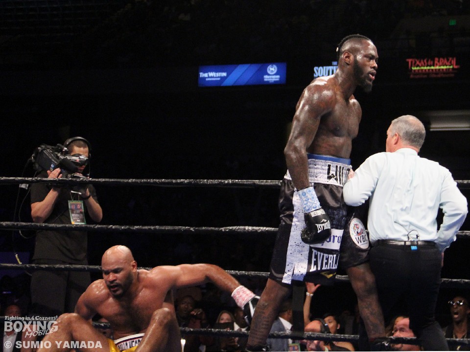 5回、ワイルダーは右ストレートでチャンスをつかみ、左フックをフォローしてダウンを奪った。ワシントンは立ち上がったが、そこにワイルダーが連打。ここまでとみたレフェリーが割って入り試合は終わった。4回までのスコアはジャッジひとりが39対37でワイルダー優勢だったが、二者は38対38のイーブンと採点していた。5度目の防衛に成功したワイルダーは38戦全勝(37KO)、ワシントンは20戦19勝(12KO)1敗1分。