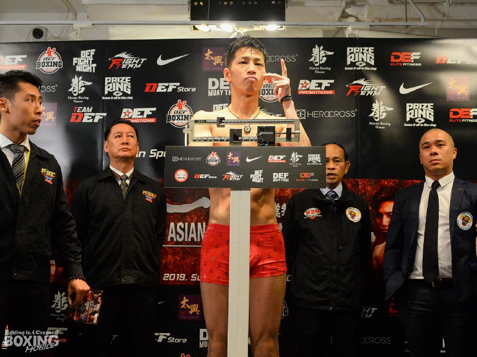 フェザー級8回戦に臨む一昨年の全日本新人王である佐々木は126ポンドでパスし、相手のマー・ゲアン(中国)も同じ体重でパスした。今回のためにパスポートを準備し、計量でのフェイス・オフ(睨み合い)も初経験だったという佐々木は「とても燃えている。不慣れな外国遠征には想定外のこともあったけど、計量をパスした解放感をすべてリングにぶつけたい」と闘志満々に語った。
