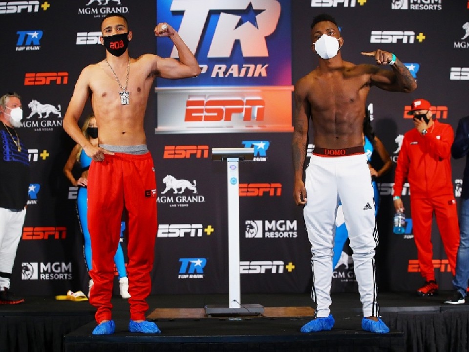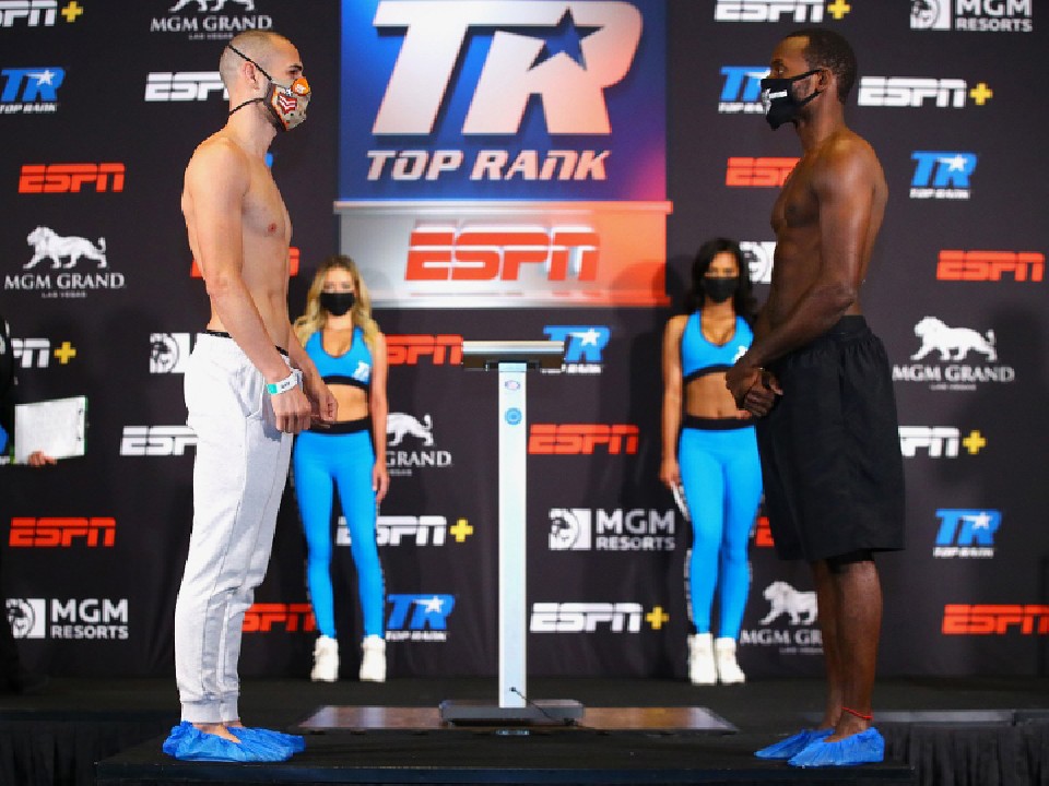 これが2週目の第4弾となる18日(日本時間19日)のトップランク社&ESPNのラスベガス再開興行。その前日計量が会場となるMGMグランドのザ·バブルで行われた。