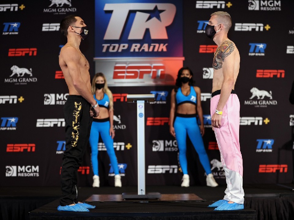 米国・ラスベガスのMGMグランドカンファレンスセンターで21日(日本時間22日)に開催される、トップランク社とESPNによるサマーシリーズのシーズン1ラストとなる前日計量が20日に行われた。メインイベントでは前WBO(世界ボクシング機構)フェザー級王者オスカル・バルデス(29=メキシコ)が、ジェイソン・ベレス(32=プエルトリコ)を相手にスーパーフェザー級10回戦を迎える。