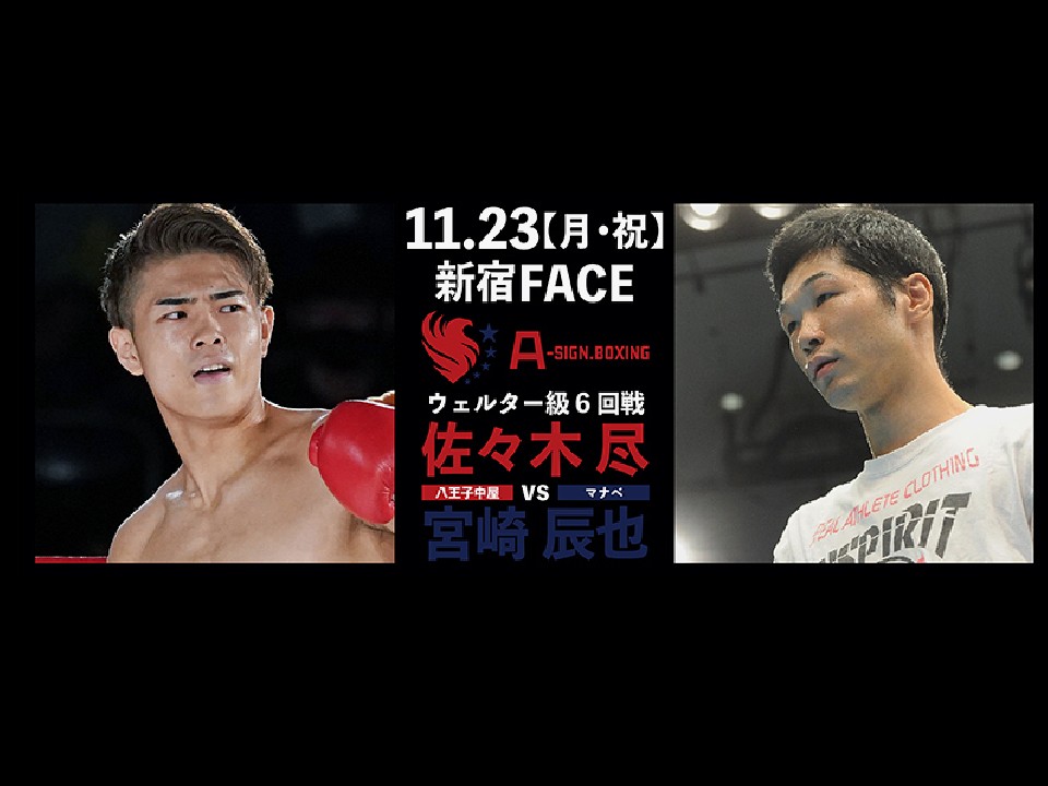 メインイベントで出場する佐々木尽(19=八王子中屋)は、ベテラン強打者の宮崎辰也(36=マナベ)を相手に初のウェルター級で6回戦を戦う。佐々木は先日、募集をかけらえた日本ユース・スーパーライト王座決定戦出場に唯一手を挙げており、この試合で勝利しA級に昇格することを条件に同ユース王座決定戦の出場資格を得る。新旧のスラッガー対決に注目だ。