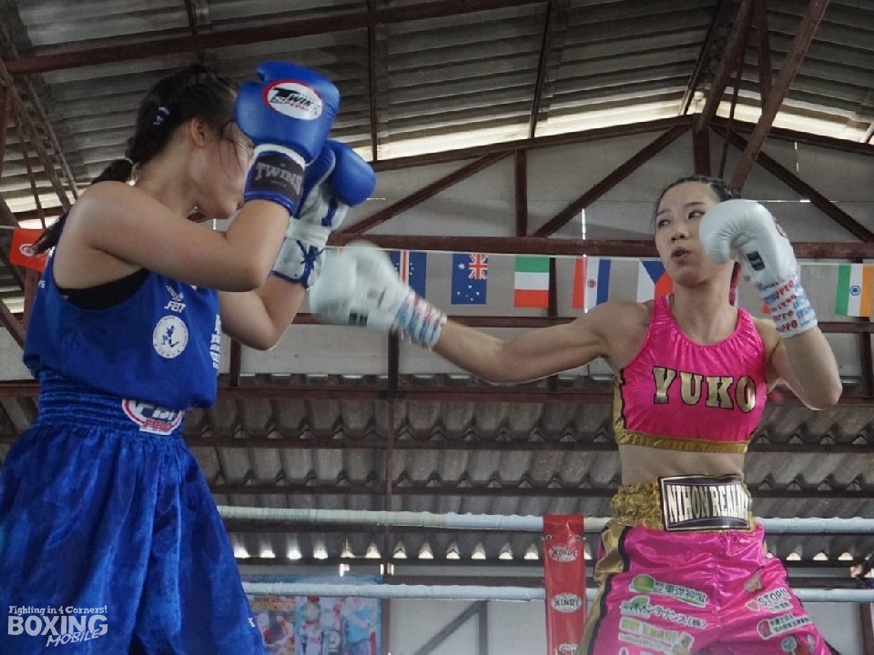 元WBC(世界ボクシング評議会)女子ミニマム級王者の黒木優子(31=YuKO)、日本アトム級2位の山中菫(20=真正)、日本女子フライ級3位の柳井妃奈美(23=真正)の3選手が28日、タイ・バンコク市内のリングに上がった。