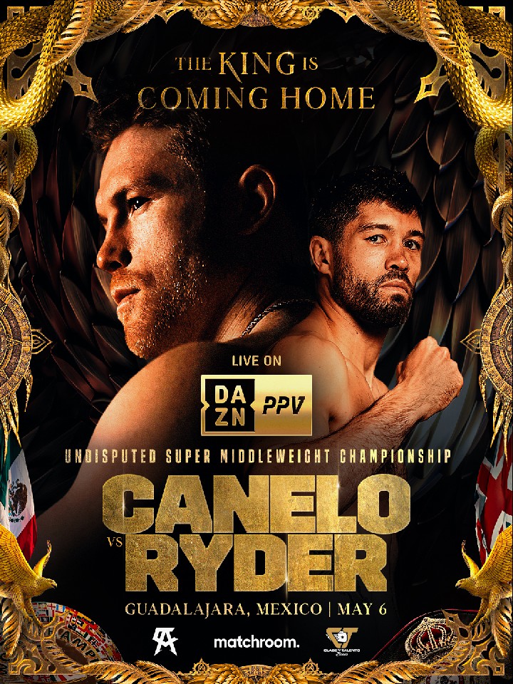 日本時間の15日、スーパーミドル級世界4団体統一王者のサウル・カネロ・アルバレス(32=メキシコ)とWBO同級暫定王者のジョン・ライダー(35=英国)の試合が組まれたことが、正式に発表された。この注目対決は、5月6日にメキシコ・ハリスコ州の州都グアダラハラにあるアクロンスタジアムで行われる。
