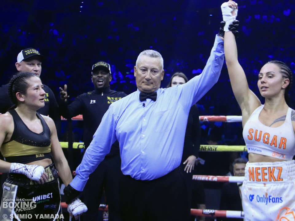 WBA女子世界バンタム級タイトルマッチが12日、オーストラリア・パースのRACアリーナで行われ、王者ニーナ・ヒューズ(41=英)が、元IBF女子世界同級王者チェルネカ・ジョンソン(29=オーストラリア)を相手に、2度目の防衛戦に臨んだ。