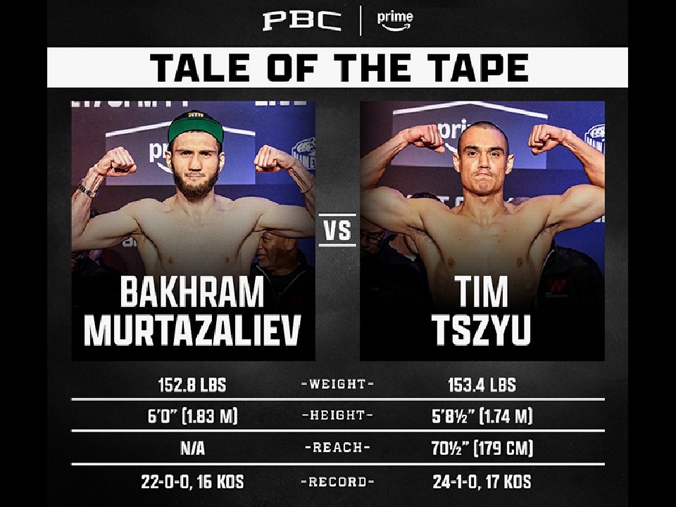 米国・フロリダ州のオーランドで現地時間19日、元WBO世界スーパーウェルター級王者のティム・チュー(29=オーストラリア)が、IBF世界スーパーウェルター級王者バクラウ・ムルタザリフ(31=ロシア)の世界王座に挑戦する。その前日計量が行われ、両者が秤の前で対峙した。