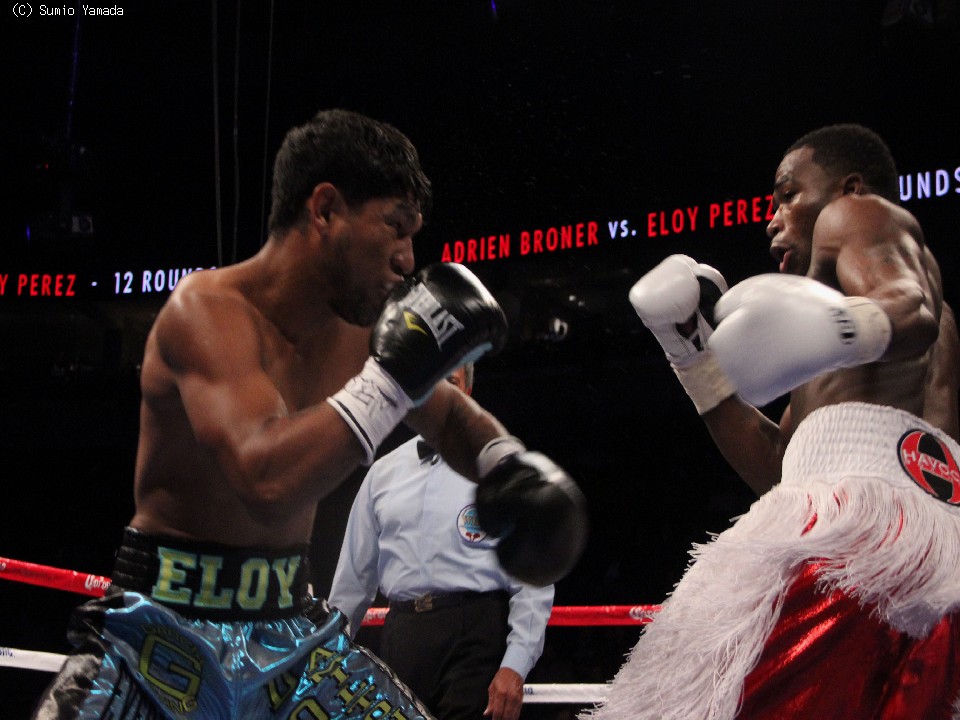 WBO世界スーパーフェザー級タイトルマッチ、王者エイドリアン・ブローナー(米)対1位エロイ・ペレス(米)の12回戦は25日(日本時間26日)、マイダナ対アレクサンダーとのダブルメインとして米国ミズーリ州セントルイスで行われた。WBAの内山高志(ワタナベ)、WBCの粟生隆寛(帝拳)を差し置いてスーパーフェザー級最強の評価があるブローナー。これまた前評判の高い無敗の指名挑戦者を相手にベルトを守ることはできたのか。