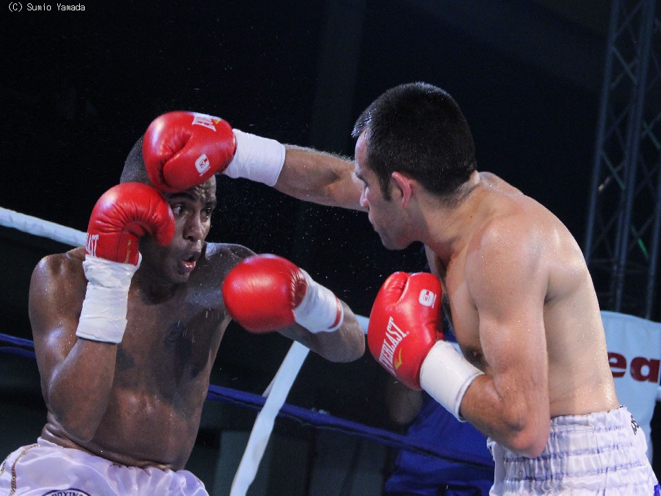 6連敗後に6回戦で判定勝ち、その後は6回戦で判定負け―そんなアコスタが世界15位に突然入ってきたのは4月のこと。WBA恒例の「KOドラッグ」イベントに合わせたソリスの防衛戦とはいえ、ここまで露骨で無謀なマッチメークは前代未聞といえる。