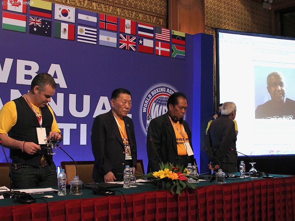 総会初日は各地域トップからの報告が行われた。セレモニーにはフェザー級のスーパー王者クリス・ジョン(インドネシア)のほか元フライ級王者デビッド・グリマン(ベネズエラ)、さらに日本からは井岡弘樹(井岡ジム会長)、亀田興毅&亀田大毅兄弟らが出席した。