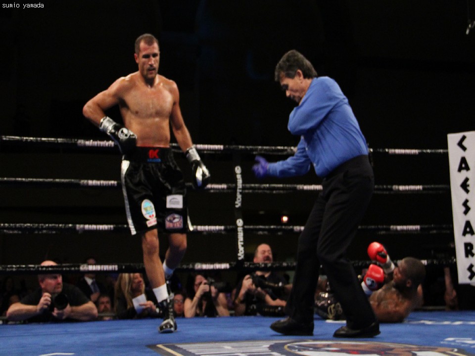 コバレフの圧勝だった。強打に定評のあるコバレフは2回終了間際にダウンを奪って圧倒的優位に立ち、3回にもサウスポーの挑戦者にダメージを与えた。4回にバッティングで右目上をカット、流血に悩まされたが、6回に再びダウンを奪って突き放した。迎えた7回、コバレフは左のボディブローで10カウントを聞かせた。2度目の防衛に成功したコバレフは25戦24勝(22KO)1分。アグニューは27戦26勝(13KO)1敗。