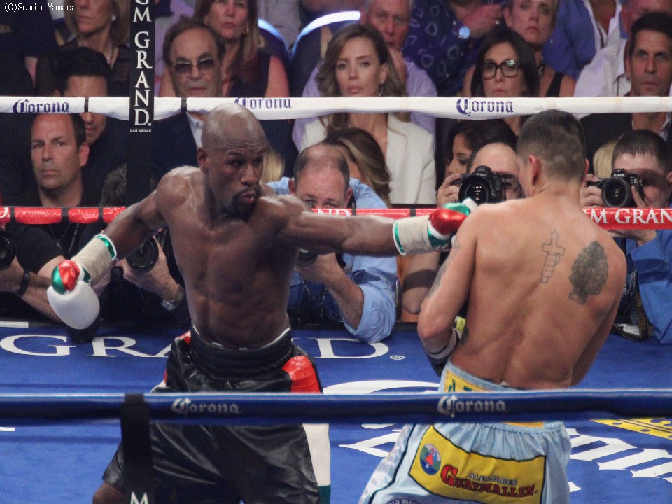 9月13日(日本時間14日)、米国ネバダ州ラスベガスのMGMグランドガーデン・アリーナで行われるWBA、WBC世界ウェルター級およびWBC世界スーパーウェルター級タイトルマッチ、王者フロイド・メイウェザー(37=米)対前WBA世界ウェルター級王者マルコス・マイダナ(31=亜)の再戦まで1ヵ月弱。すでにメイウェザーの体重は150ポンド(約68.0キロ)まで落ちているという。