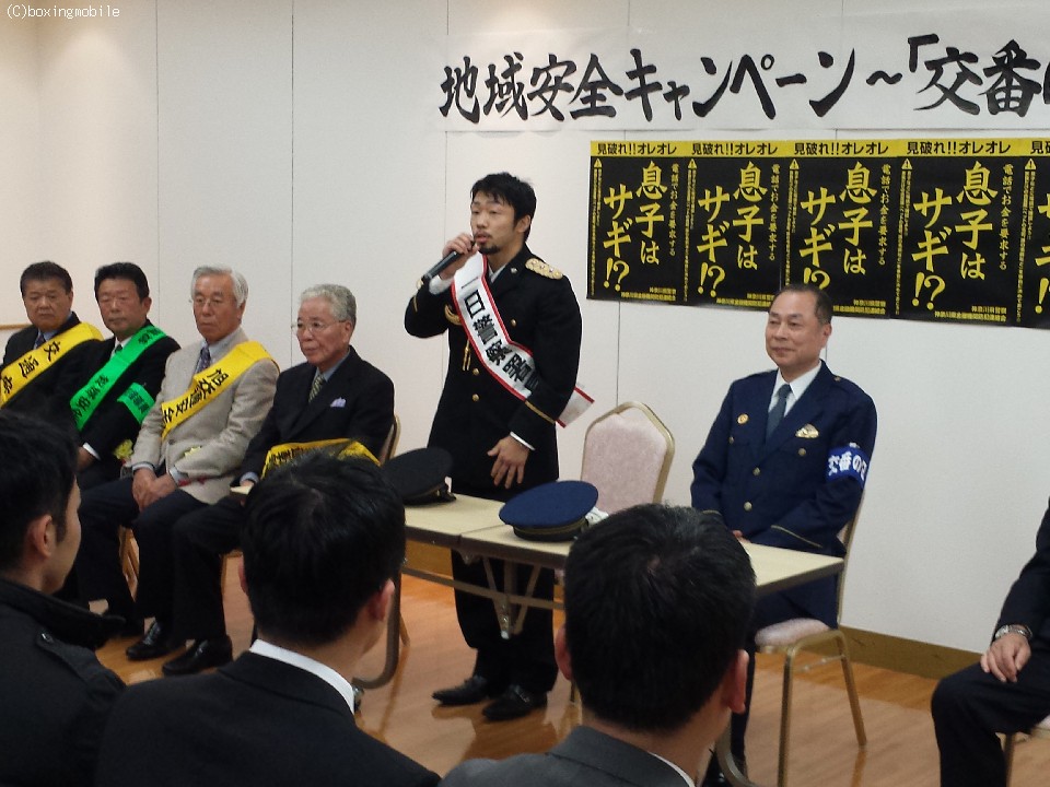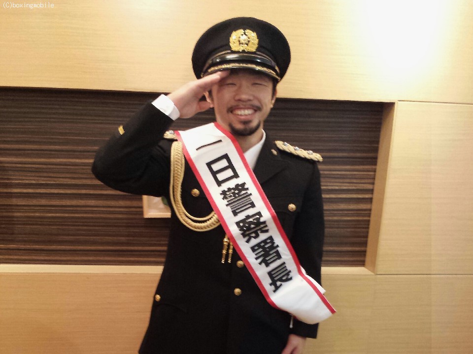 12月30日にWBC世界ライトフライ級王座決定戦を控えた八重樫東(31=大橋)が、横浜市旭区で「交番の日」制定記念日における1日警察署長として、防犯や交通安全を呼びかけた。