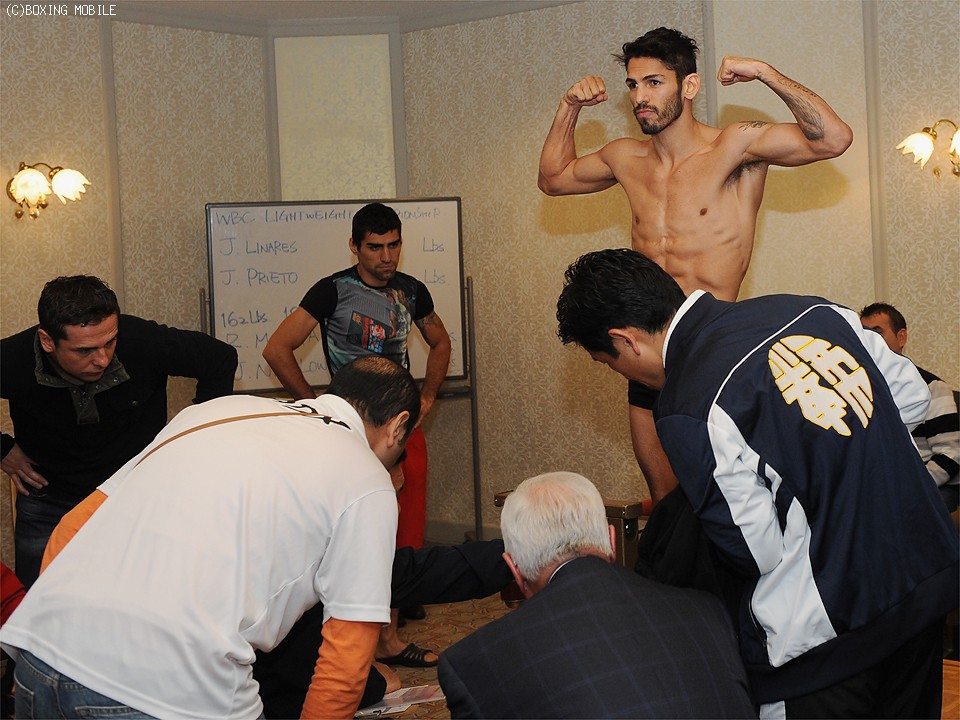 3階級制覇を目指すWBC世界ライト級1位のホルヘ・リナレス(29=帝拳)が、同級2位ハビエル・プリエト(27=メキシコ)と明日30日、東京体育館でWBC世界同級王座決定戦に出場する。試合を翌日に控えた29日、都内のホテルで前日計量に臨んだ。