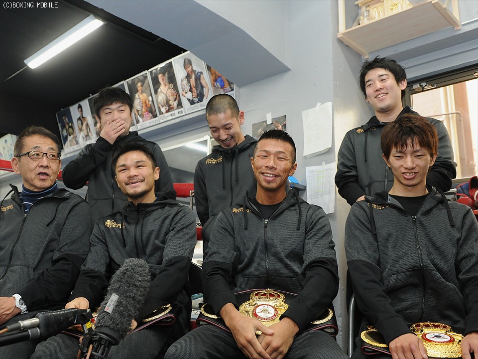 同席した渡辺均会長は、3本のベルトに「嬉しいの一言。僕のボクシング人生はこれからだよ」と喜び、内山、河野、田口に目を細めた。今年は3王者の防衛戦で忙しくなりそうだ。