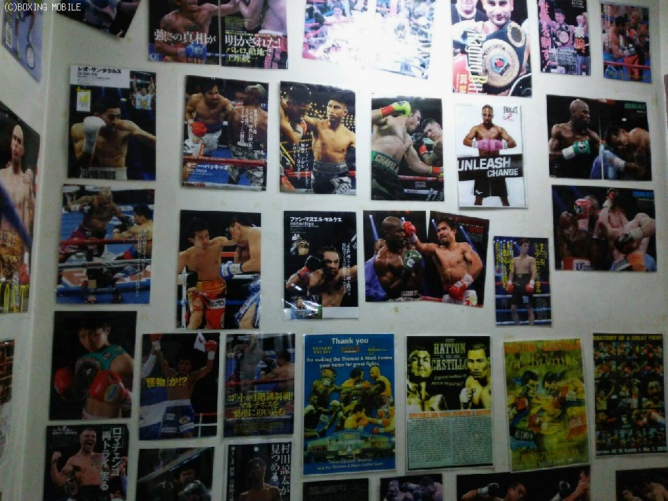 JR常磐線と環状7号線が交差する亀有駅東交差点そばの雑居ビルの2階。1階のステーキ屋の看板が目立つのですぐにわかるはずだ。ビルに入ると階段にはところ狭しと有名選手のポスターやスクラップ写真が貼られ、来るものの闘争心をかき立てる。この日は夕方に訪ねたこともあり、女性や年配の方の姿が目立ったが、ミットを構えた会長から丁寧な指導を受けていた。