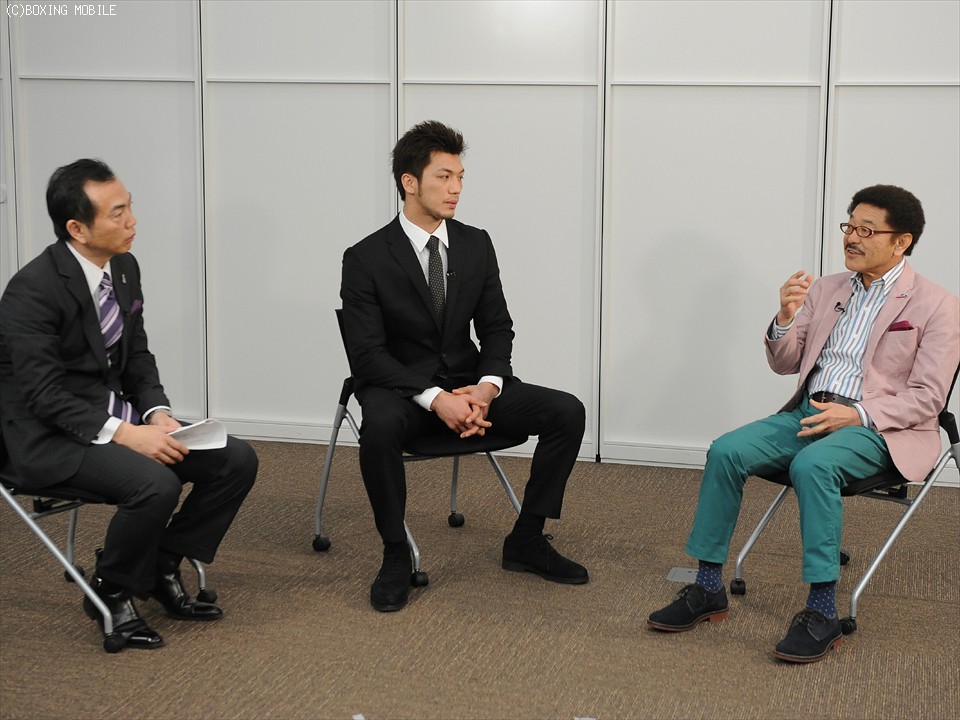 約1時間の対談を終えた具志堅氏は「(村田は)紳士的なスポーツ選手という印象。戦ううえでの気持ちが強く、基本もバランスもしっかりしている。スター性もある」と絶賛。一方の村田は「(具志堅氏は)テレビのキャラと違ってロジカル(論理的)なので不思議な感じがした」と感想を口にした。すると具志堅氏が「ボクシングの話をするときは真面目なんだよ」と笑顔をみせるひと幕もあった。なお、村田の次戦は、まだ具体的には決まっていない。また、具志堅氏は6月11日〜14日に米国ニューヨーク州カナストータで開催される殿堂式典に、家族同伴で出席する予定だという。
