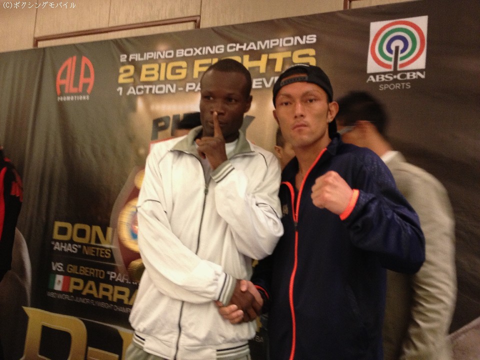 WBOインターナショナル・バンタム級王座決定戦の発表会見が26日、マニラ市内のソレイルホテルで行われた。WBO世界同級ランキング1位の赤穂亮(横浜光)とガーナ出身の実力者、プロスパー・アンクラが28日に拳を交える。