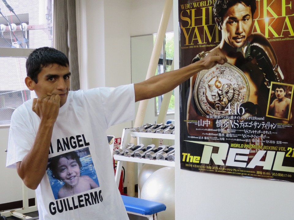 練習前に会見を開いたサンティリャンは「アルゼンチンで準備は完璧に行ってきた。私は地域タイトルを4つ獲ったことがあるし、山中もチャンピオン。チャンピオン同士良い試合ができるだろう」と昨日来日したばかりだが体調の良さをアピールした。「山中の左が「神の左」というのは日本に来てから知った。神の手はマラドーナ(アルゼンチンの英雄の元サッカー選手)しか知らない。私のパンチは全て強い、どれで山中が倒れるかわからないが、ベルトは私がアルゼンチンに持って帰る」と王者山中の8度目の防衛を阻むと気合を入れた。