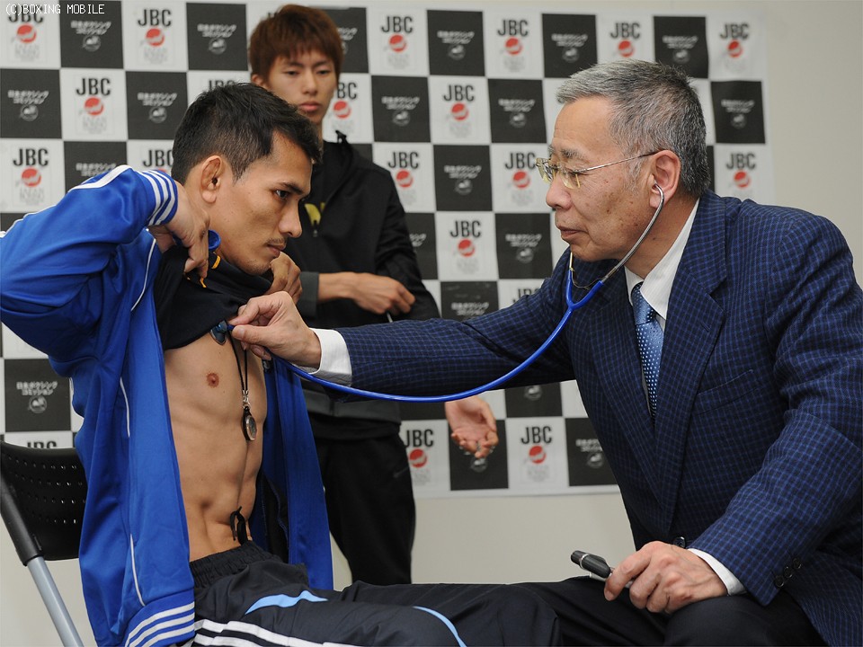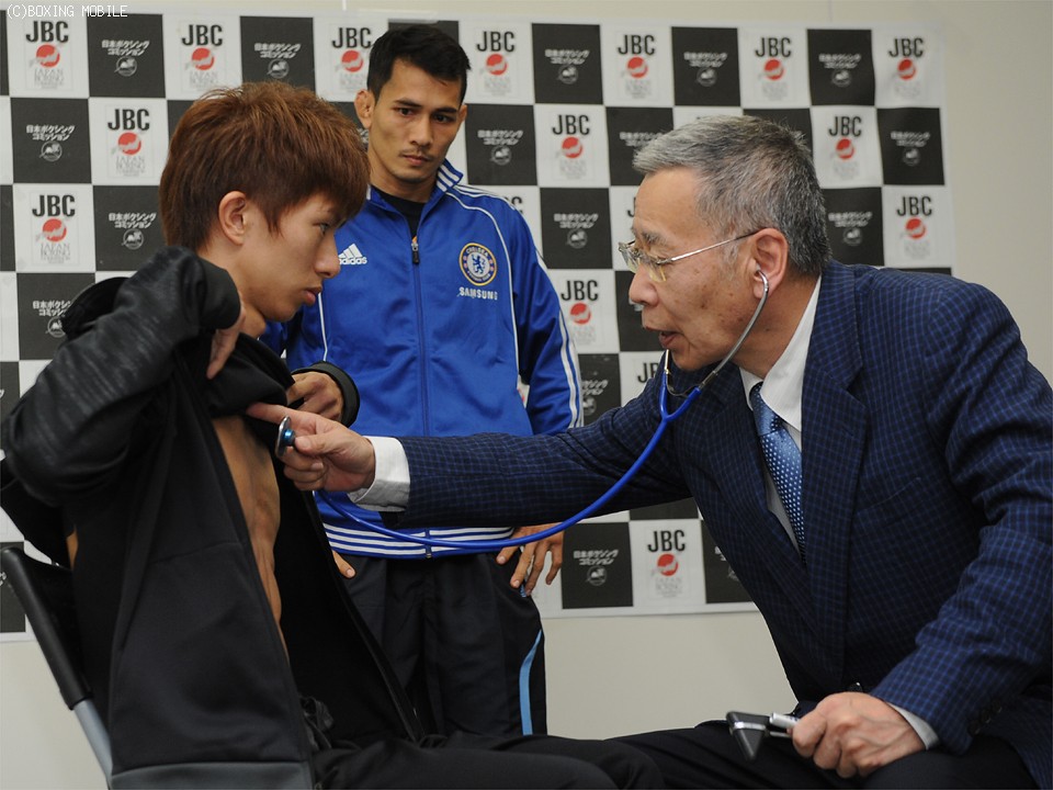 5月6日(水)、東京・大田区総合体育館で開催されるWBA世界ライトフライ級タイトルマッチ、王者・田口良一(28=ワタナベ)対同級14位クワンタイ・シスモーゼン(30=タイ)の予備検診が後楽園ホール展示会場で行われた。