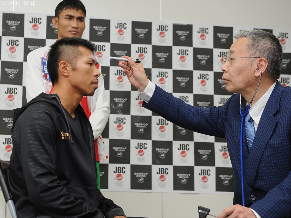 WBA世界スーパーフェザー級スーパー王者、内山高志(35=ワタナベ)と、同級7位の挑戦者ジョムトーン・チューワッタナ(25=タイ)の予備検診が4日、後楽園ホール展示会場で行われ、ともに異常は見られず、万全のコンディションを強調した。試合は明日5月6日(水)、東京・大田区総合体育館で行われ、会場ではオフィシャルTシャツと記念ポスターが販売される。