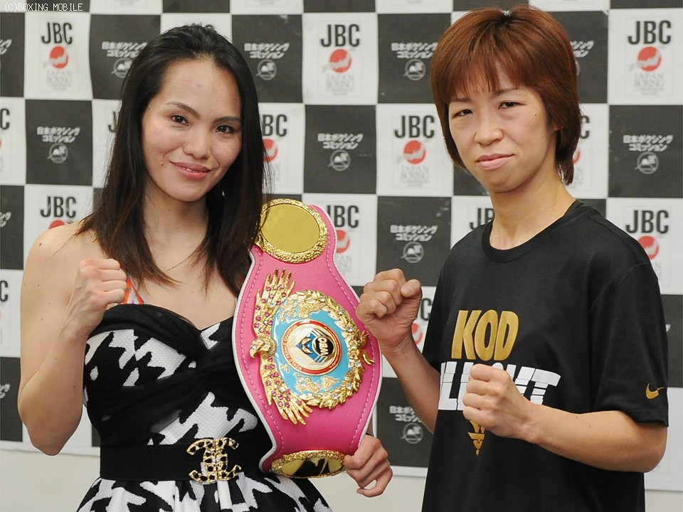 明日6日(水)、東京・大田区総合体育館で開催されるWBO女子世界ミニフライ級タイトルマッチ、王者・池原シーサー久美子(30=フュチュール)対東洋太平洋女子フライ級王者・江畑佳代子(39=ワタナベ)の調印式と前日計量が都内の後楽園ホール展示会場で開かれた。アマチュア出身の両者は、トリプル世界戦として行われる注目度の高い舞台で、「女子ボクシングの面白さを感じてもらいたい」と抱負を語った。