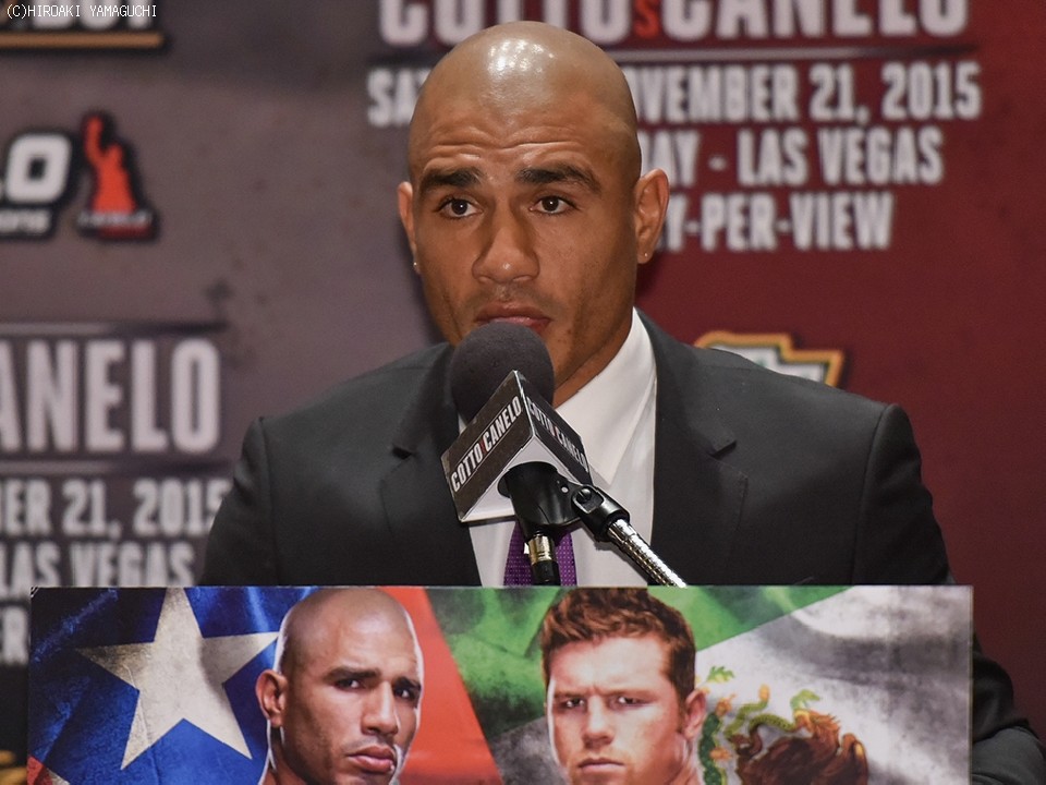 これに対しベストにネクタイ姿のコットは「11月21日にはミゲール・コットにできる最上のものを提供する。やるべきことはフレディ(ローチ・トレーナー)が指示してくれるので、ジムではそれに従ってトレーニングする」と話した。2年前からコンビを組んでいるローチ・トレーナーは「ミゲール(コット)は最高の調整で試合に臨むはずだからKOで勝つと思うよ」と自信をみせている。戦績はコットが44戦40勝(33KO)4敗、アルバレスが47戦45勝(32KO)1敗1分。オッズは9対4でアルバレス有利が続いている。