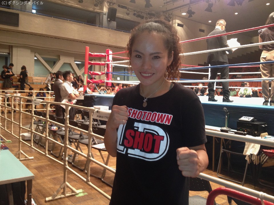 女子選手のレベルアップが確認できた6日の第8回U-15全国大会。リングサイドから日本女子プロボクシングの将来を担う子供たちに声援を送るWBO女子世界ミニフライ級王者の池原シーサー久美子(フュチュール)とIBF女子世界ライトフライ級王者の柴田直子(ワールド)を発見。