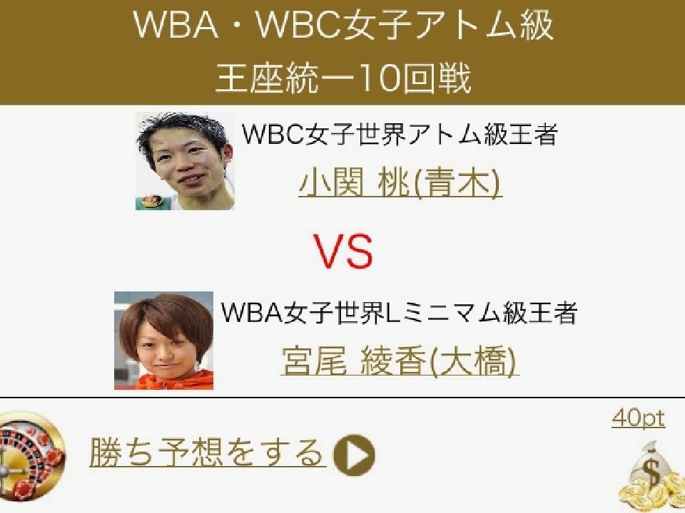 10月22日に控えている女子最軽量級の頂上決戦、WBC女子世界アトム級王者の小関桃(青木) とWBA女子世界Lミニマム級王者の宮尾綾香(大橋)による歴史的世界王座統一戦の展開予想を聞くことができた。