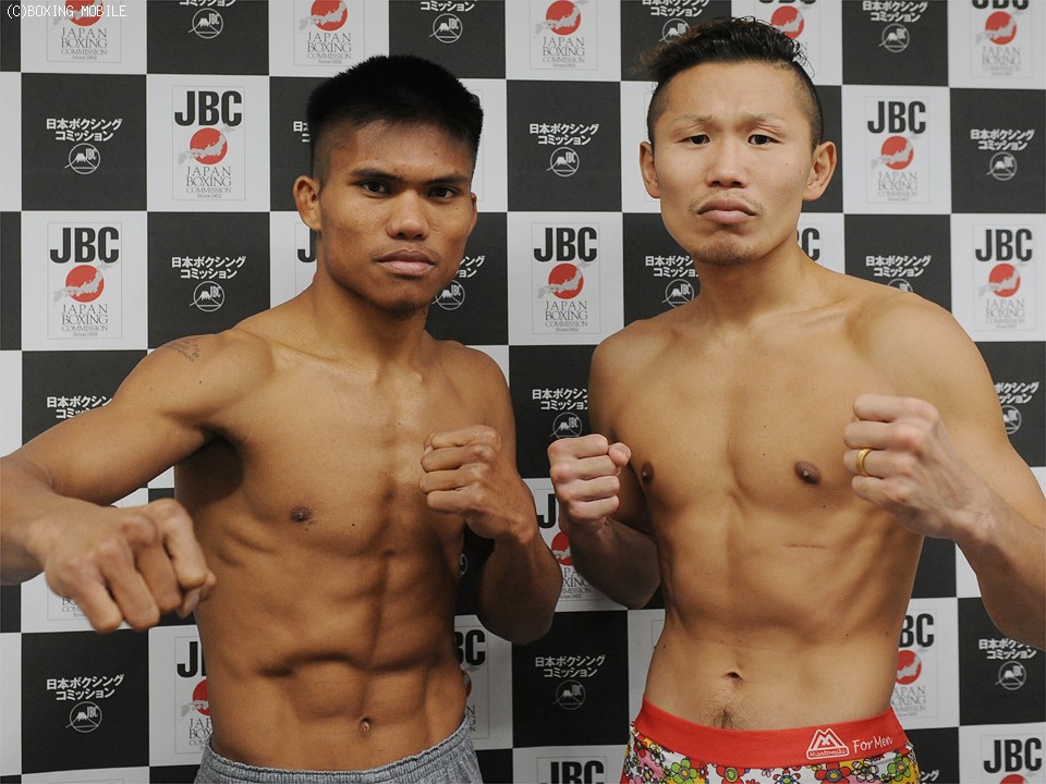 明日12日に後楽園ホールで開催される「ダイヤモンドグローブ&DANGAN141」のメイン、WBCユース・Lフライ級王座決定戦に出場する日本同級1位の拳四朗(23=BMB)とOPBF東洋太平洋ミニマム級2位ロリー・スマルポング(21=比)の前日計量が都内のJBC事務局で行われ、両者ともLフライ級リミットの48.9kgを下回る48.7kgでクリアした。