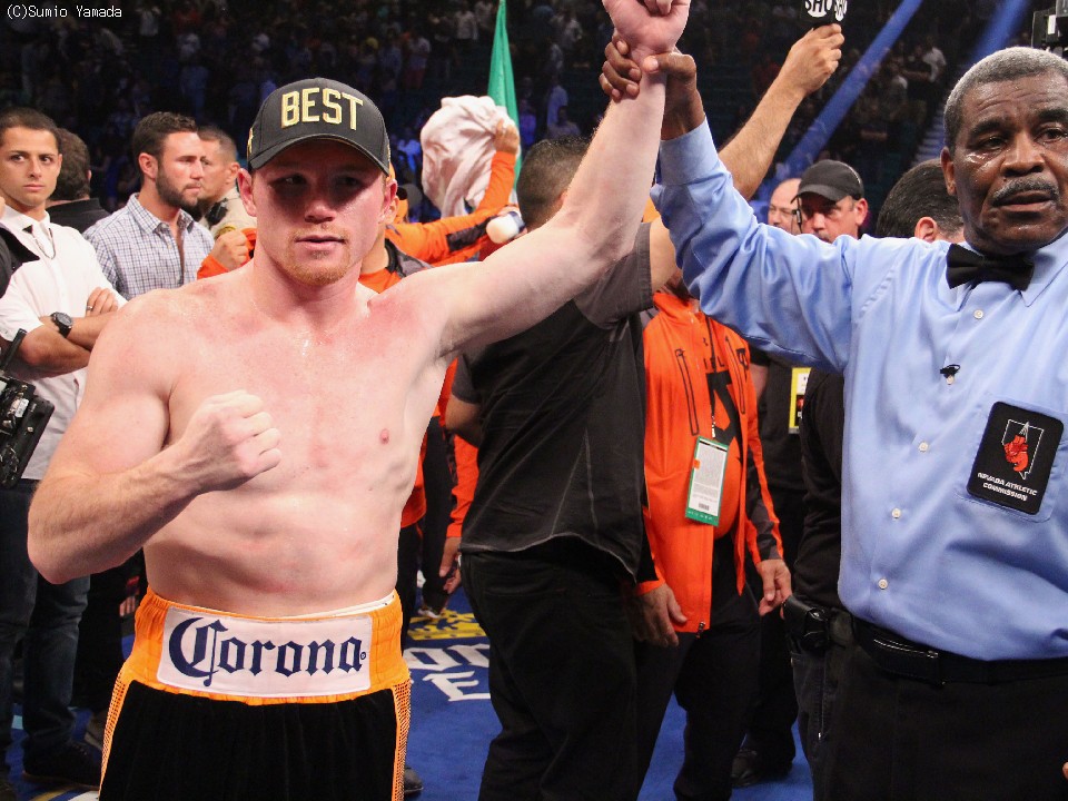 ミドル級のリミットは160ポンド(約72.5キロ)だが、アルバレスは167.8ポンド(約76.1キロ)だった。WBCの規定では1ヵ月前は超過体重をリミットの10%以内に抑えなければならない。すでにアルバレスは128ラウンドのスパーリングをこなしていると伝えられる。なお、試合は両陣営の合意で155ポンド(約70.3キロ)の契約体重で行われる。オッズは依然として9対4でアルバレス有利が続いている。