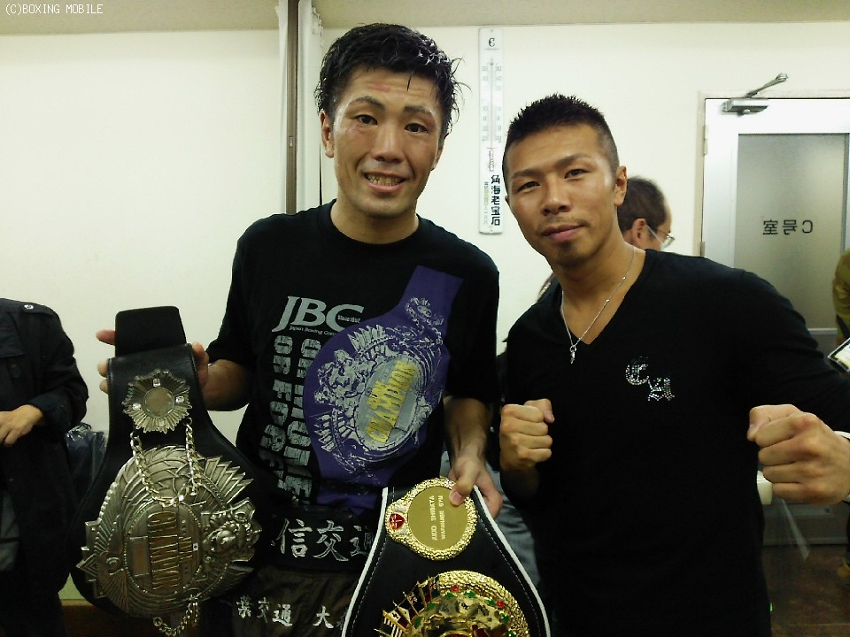 その先輩王者のひとりで、大晦日に11度目の防衛戦が決定したWBA世界Sフェザー級スーパー王者の内山高志(10日で36歳)は後輩の応援に駆け付け、「倒したいという気持ちが出ていた。良い試合だった」と柴田を労い、二人で写真に収まった。