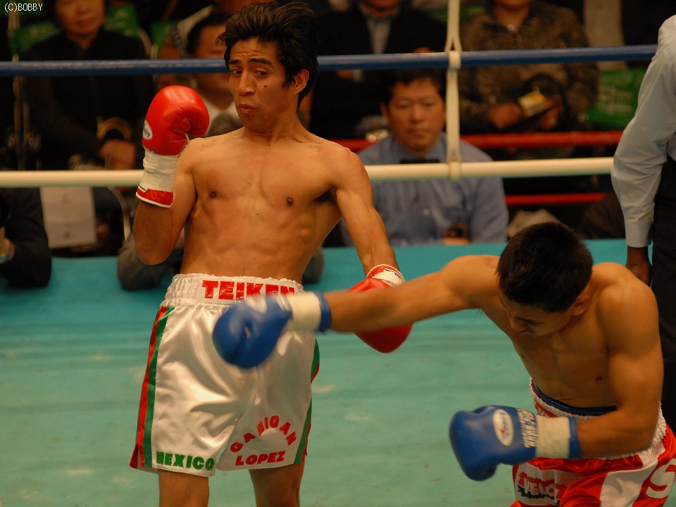 挑戦者のロペスは03年8月にデビューした13年選手で、ルーキー時代には来日して新井田豊(横浜光=元WBA世界ミニマム級王者)のスパーリング・パートナーを務めたこともあり、後楽園ホールのリングに上がった経験も持っている。世界ランクの常連でもあるが、大事なところで星を落としてきたため大舞台に上がる機会がなかったが、昨年7月に初めてペドロ・ゲバラ(メキシコ)に挑戦。その試合では敗れたが、10月には4回TKO勝ちで再起を果たしている。サウスポーの技巧派強打者で戦績は32戦26勝(17KO)6敗。