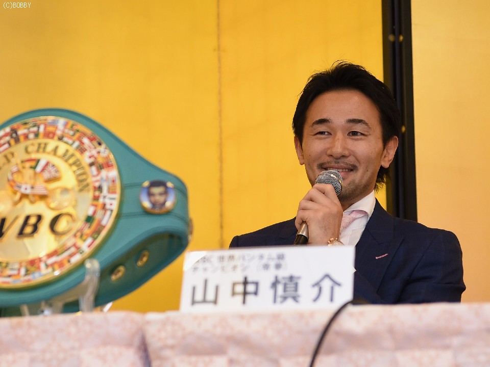 11年11月の戴冠から9度の防衛を重ねている山中は、これが節目のV10 戦となるが、特に気負った様子はない。すでに11日から1週間の沖縄キャンプも行い、調整は順調に進んでいる。「ソリスという目の前の相手だけを考えて、いつもどおり変わらずにやる」と淡々と話した。ソリスに関しては「出入りが速く、右ストレートよりも中間距離でのフックやアッパーに気をつけたい」と警戒心をのぞかせた。それでも前回のV9戦が判定になったこともあり「今回はすっきりとKOで終わらせたい。自分で言うのも恥ずかしいけれど、(KOパンチは)神の左じゃないですかね」とKO宣言が飛び出した。奇しくも試合日は夫人の誕生日にあたり、山中は「勝利という最高のプレゼントをしたい。それがモチベーションにもなる」と自らを鼓舞していた。