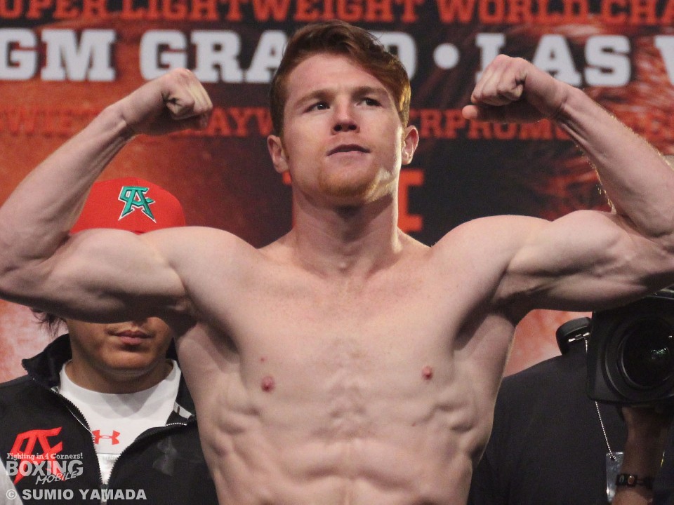 WBC世界ミドル級王者サウル・カネロ・アルバレス(25=メキシコ)は5月7日(日本時間8日)、米国ネバダ州ラスベガスのT‐モバイル・アリーナでアミール・カーン(29=英)を相手に初防衛戦を行うが、その1ヵ月前の予備計量が7日に行われた。