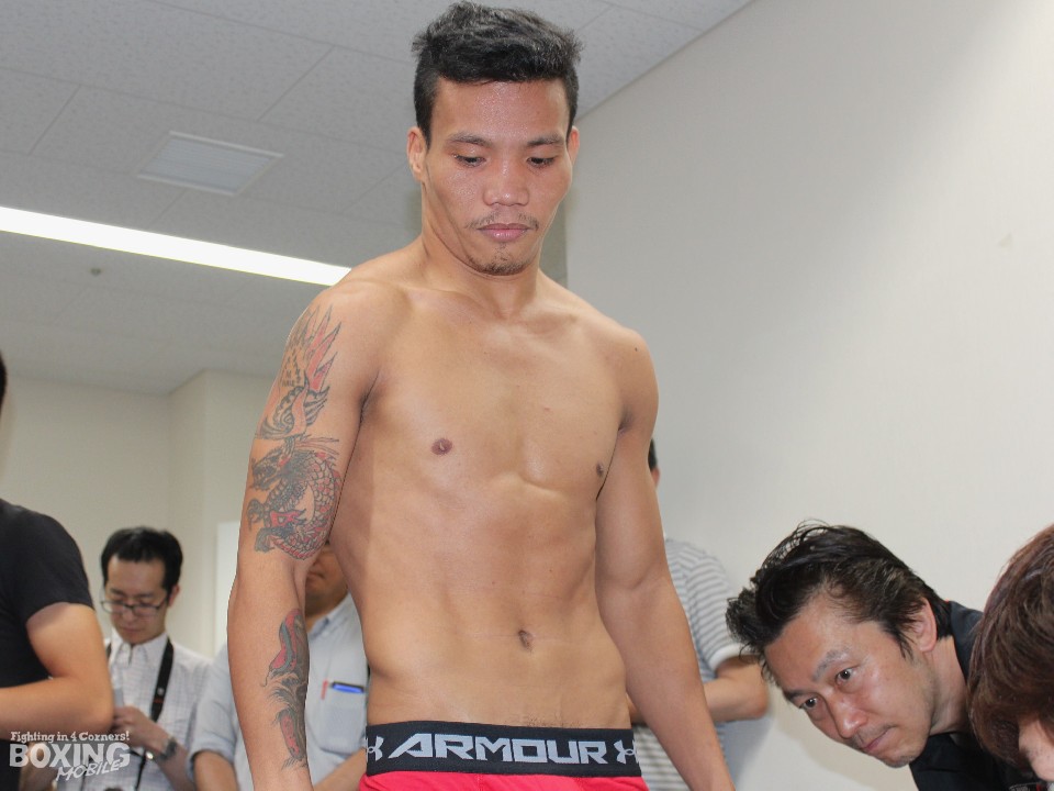 初のメジャータイトルとなる東洋太平洋王座に挑戦する比嘉は100gアンダーの50.7kgで一発クリア。計量後には野木丈司トレーナーが用意したココナッツジュースを飲んで一息ついた。「一安心しているが本番は明日。あとはやることをやる。注目度の高い試合だが練習は今までの倍はしてきたので自信ある」と静かに闘志を燃やした。相手のディアレについて「自分がデビュー戦の時にメインイベントで先輩(江藤光喜)と戦っていた選手。パンチも上手さもあるが気持ちでは負けない。勝たないことには世界が見えてこないのでKOでベルトを獲りにいく」と無敗のまま10連続KOを狙うと意気込んだ。
