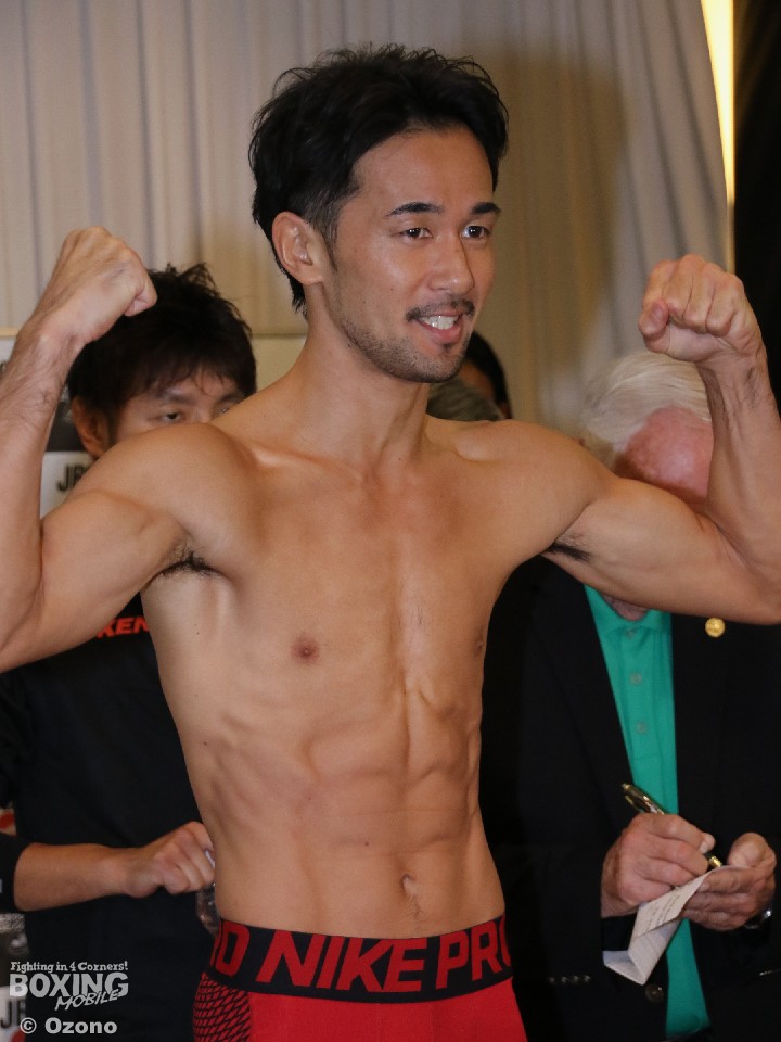 リミットの55.3kgで計量をパスした長谷川は「バカ食いしないようにしっかりゆっくりとリカバリーしたいと思います。神戸大丸のサムゲタンをゆっくり時間をかけて食べたいですね。ウーゴは良い体をしていましたし、明日は大きくなってくるでしょうけど、それも想定内なので大丈夫です。できるだけ打ち合わない、母親が好きだと言っていたボクシングをして綺麗な顔で終われたらいいですね」と静かに語った。