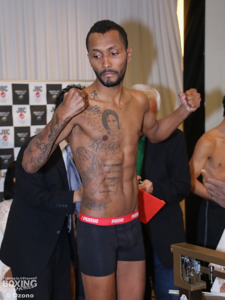 リベンジを誓い再び日本のリングに乗り込んできたモレノは100gアンダーの53.4kgで秤を降りた。計量後はパナマから多くの関係者とともに足早に会場を後にした。