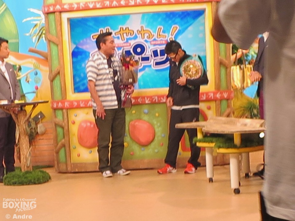 昨夜の激闘を見事なTKOで制したWBC世界スーパーバンタム級新王者の長谷川穂積(35=真正)は一夜明け会見を終えたその足で試合後恒例の関西の土曜朝の人気番組「せやねん!」出演のための大阪市内の毎日放送に姿を見せた。長谷川のセコンドを11度連続務めた番組のメインMCトミーズ雅さんに「あんたは本当にすごい」と祝福された長谷川は「いつも応援してもらっているので、来れてよかったです」と喜びを語った。