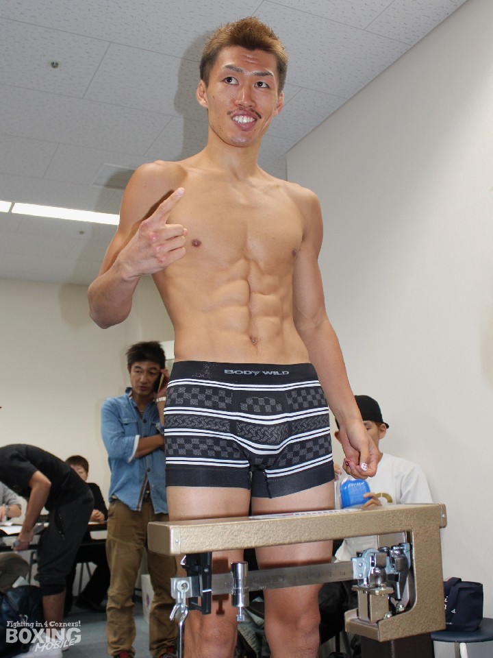 32戦目にしてチャンス到来となった東上はリミットちょうどの58.9kgで一発クリアした。横に並んだ杉田を見て「計量の時は小さく見えるが明日になったら体重も増えてきて大きくなっているはず。それは自分も同じなので気にしていない」と感想を口にした。「今回は本当に調子が良い。明日の試合は期待し