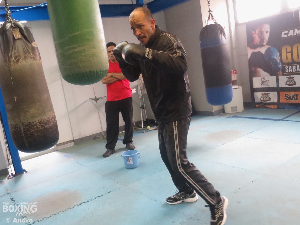 練習に入ったセルメニョはロープを飛び、ミット打ちとバック打ちを交互に4ラウンド行い最後はロープを2ラウンド飛び練習を打ち上げた。