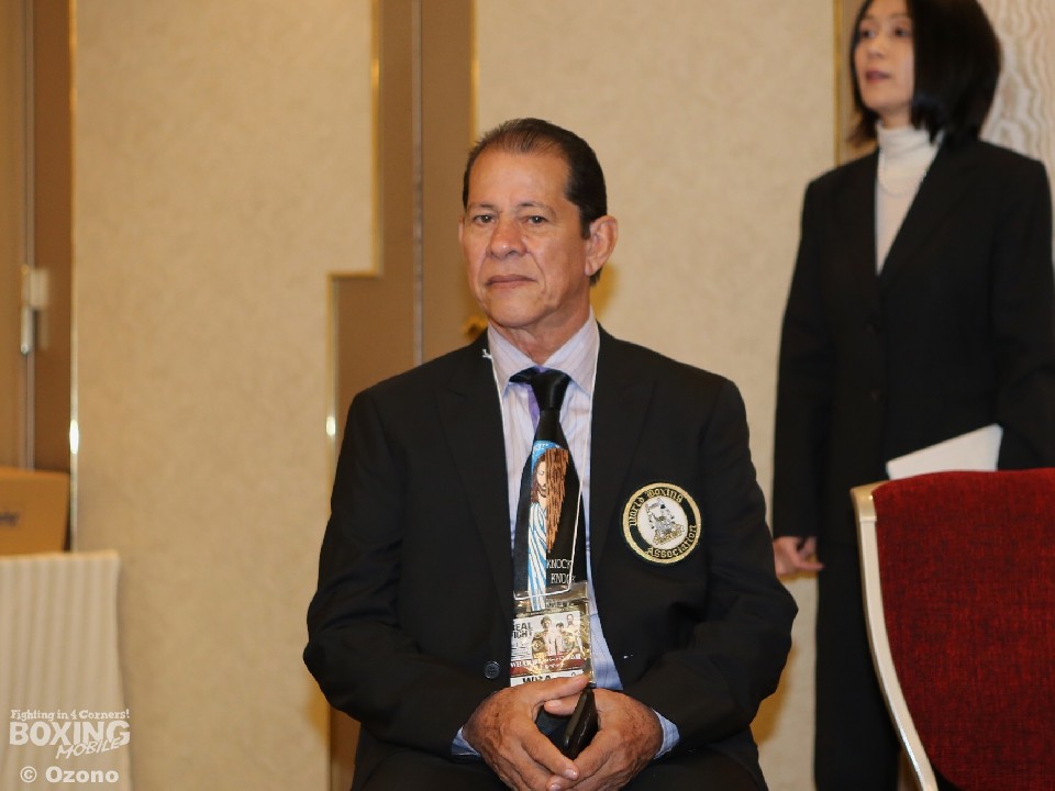 WBA世界スーパーバンタム級タイトルマッチに出場するチャンピオンのネオマール・セルメニョ(ベネズエラ)と、挑戦者の久保隼(真正)が7日、世界戦の調印式を行うため大阪市内のホテルに姿をみせた。徐々に高まる世界戦の緊張感。試合は2日後の4月9日(日)、エディオンアリーナ大阪(旧大阪府立体育会館)で、第1試合は午後1時ゴング予定。